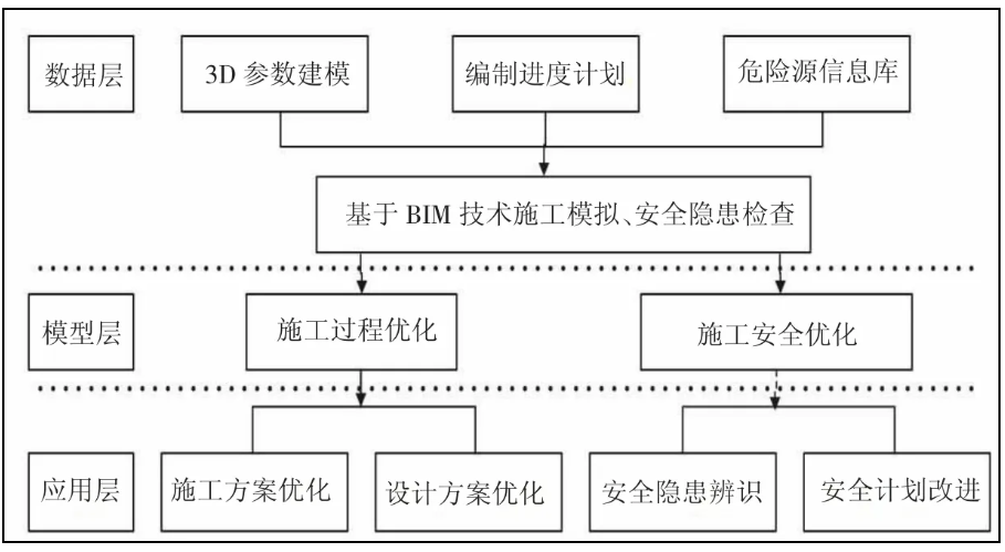 施工安全与节能管理密切相关,在绿色建筑施工阶段通过 BIM 技术进行施工安全模拟,提前识别施工过程中的潜在安全风险并制定相应的安全措施,具体流程如图 4 所示。利用 BIM 模型能够模拟诸如高空作业、大型设备吊装之类的危险施工进程,剖析可能存在的安全隐患,给施工人员予以安全预警。与此同时,施工安全设施诸如安全防护栏杆以及安全网等还能够借助 BIM 技术予以优化设计,以此保障施工安全设施的合理布局以及有效运用,降低因安全事故引发的能源浪费与环境污染。